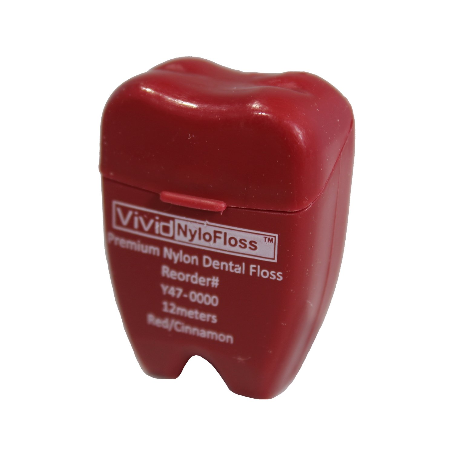 Vivid Premium Flavored Dental Floss With Color Coded Tooth Shape Case – 12 Meters – Pack of 72 (Waxed Cinnamon, Nylon Floss)