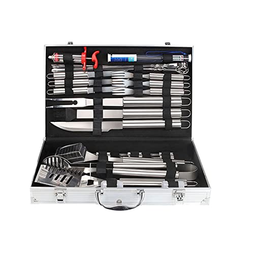 【Brilliant Quality Barbecue Utensils Set】All of these barbecue tools are made of high quality stainless steel, which is durable and easy to clean. The handles do not conduct the heat so safe to the touch. Definitely not flimsy.